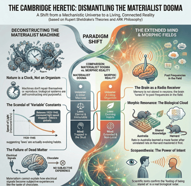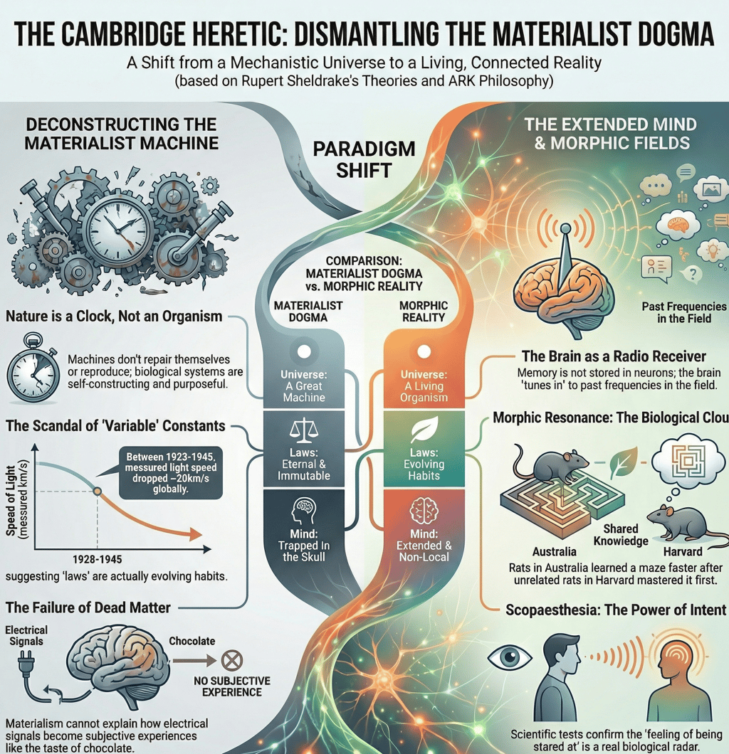 THE PSYCHOLOGICAL WALL (The Dogma): Here enters Rupert Sheldrake. If the FDA frees our body, Sheldrake frees our mind. The "Intervened Hardware" we told you about is not just chemical methylation in your cells; it is also intellectual methylation in your beliefs.