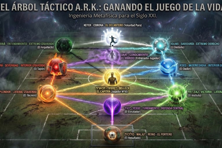 Entiende el Árbol de la Vida como una alineación táctica donde tu Voluntad (Keter) es el Delantero que busca el gol y tu Ego (Yesod/Malchut) es la Defensa que debe aguantar la presión. Aprende a despertar a tu Capitán (Tiferet) para disciplinar tus emociones.